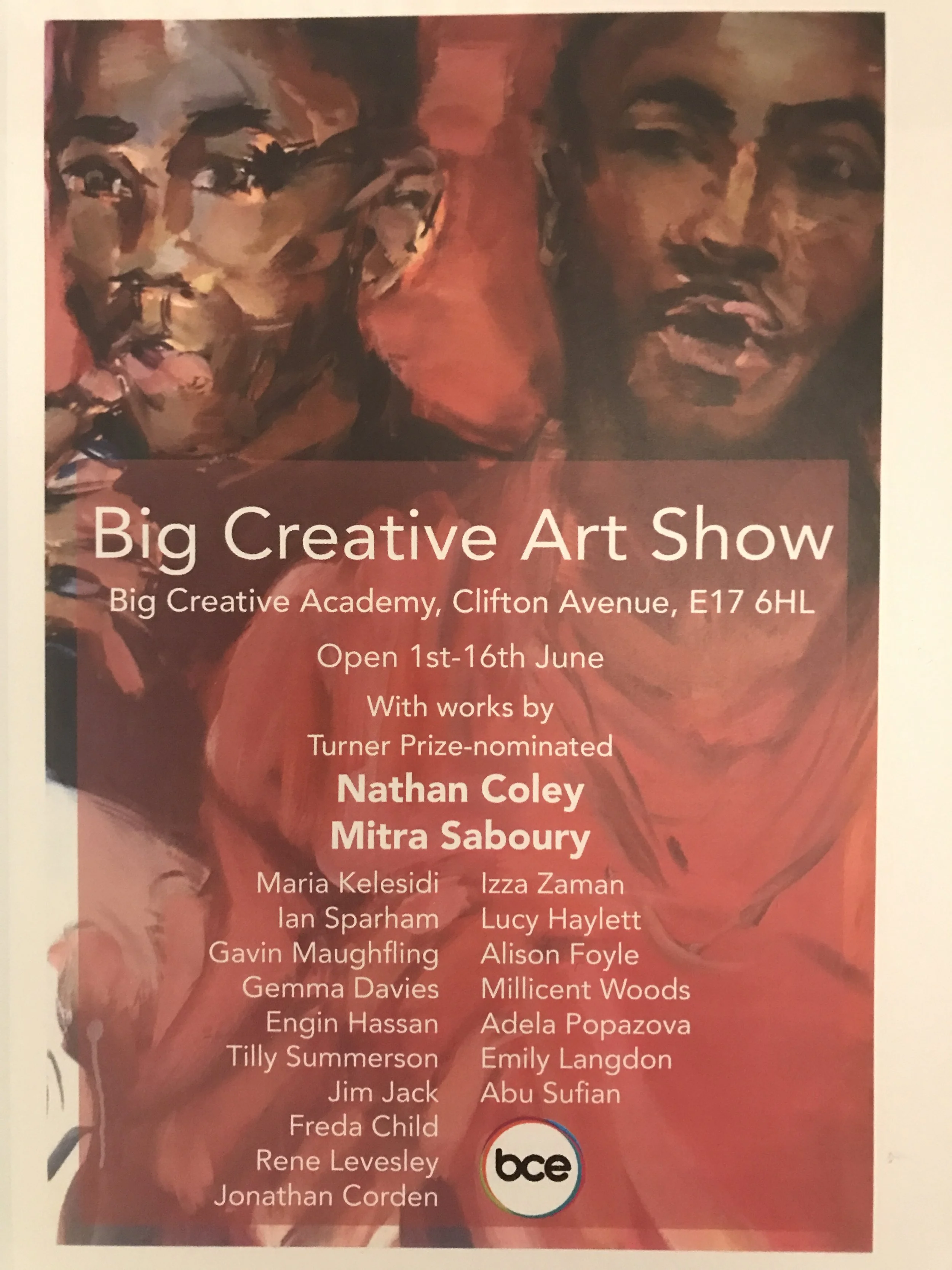 By my paintings at the Big Creative Exhibition at the Big Creative Academy E17 as part of the E17 Art Trail (July 2021)